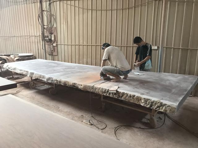 家具厂表明说实木家具都是用全实木打造的,因而会很重。并且中间的话,为了防止开裂,是打进去了钢筋的,这都是会打的,可以问一下家具的教师傅。这时对家也来了,看到这件家具后立刻张大了嘴巴。敲了敲家具之后,羡慕的说哪有什么实木大板桌造假的啊,这可是一件极品。