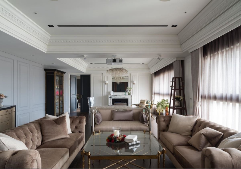 ▲经典美式双客厅以大面落地窗延揽充沛光源,带来明亮舒适感,拥有专精美式风格的设计师,为曾有旅外经验的屋主打造双拼315平的美式优雅精品房子,利用浅色大理石、玻璃、铁架、大量线板搭配水晶吊灯及精品家具,横贯异国文化元素,营造精致奢华却不俗的美式房。