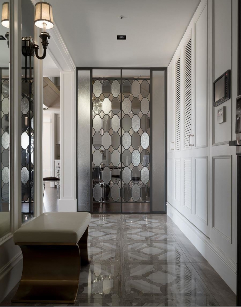 ▲进门玄关以金属框镶嵌手工定制玻璃创造独特帷幕,呈现精致非凡的低调魅力。