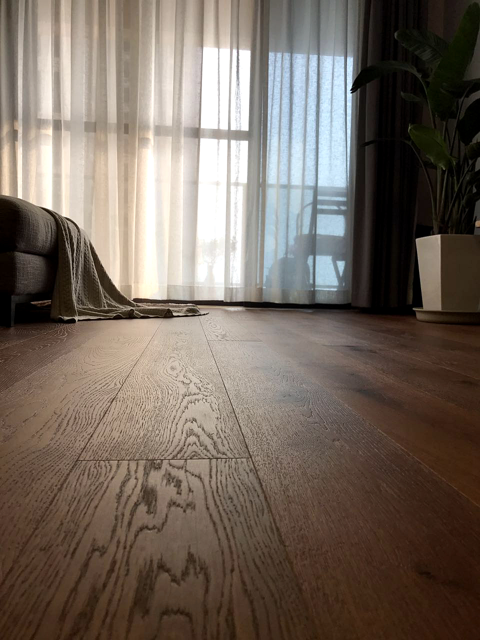 给木地板来一张特写吧,独特的纹理与质感让女主人深深的爱上它,每当她用手抚摸着这深一条,浅一条的木纹理时,就能感觉到岁月的年轮在手里的转动,在心里的流动。