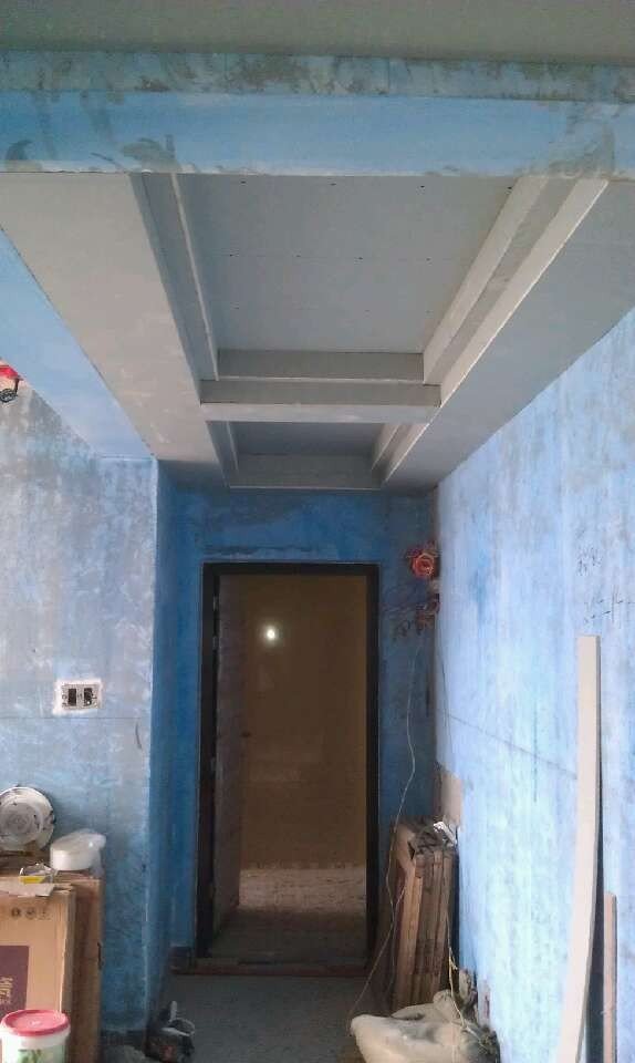 木工第二天,感觉吊顶速度好快啊,过道背景什么的都好了,这种背景要做两层是木工比较不喜欢做的活之一,他们嫌麻烦。