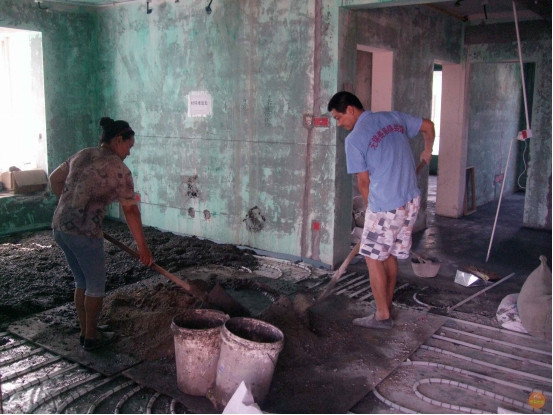 齐家网> 齐家装修论坛> 装修> 今天试压成功,王师傅夫妇已在找平。