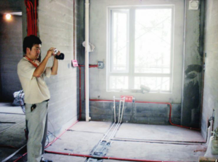 质检和工长一一对照施工图纸做检查,并逐个拍照。