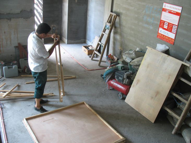 按施工进度,木工要15日进场,今天提前6天进场,展开交叉施工,是为了保证整个工程按期完工。先把工作台搭好。