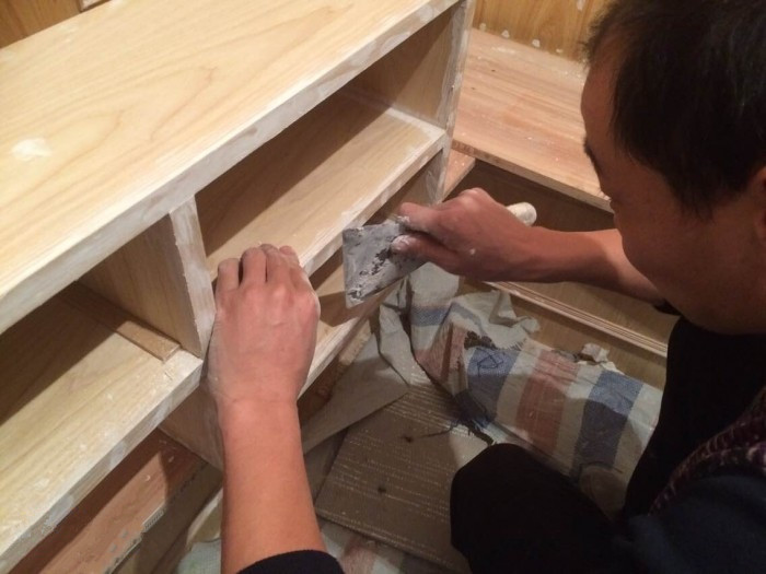 木作上漆之上漆工艺。老规矩,边上图边解说。用腻子膏把木作制作时的各种钉眼和磕磕巴巴的地方给补平整。