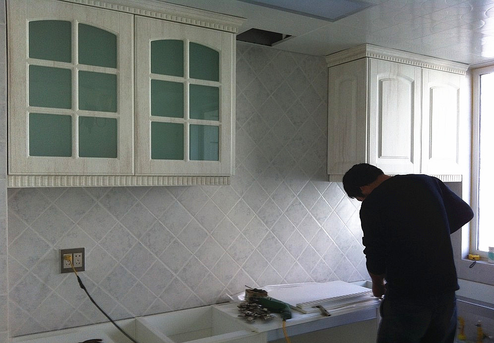 这位帅哥一开始给人感觉很嚣张,后然发现人超好,颜色是内人挑的,不做评论,厨房吊顶是白色的,稍微有点纹路,干净点好。