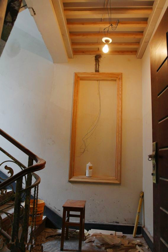 齐家网> 齐家装修论坛> 装修> 楼梯过道扁窗待嵌六角梅花花片;椽子顶铺砖望板。