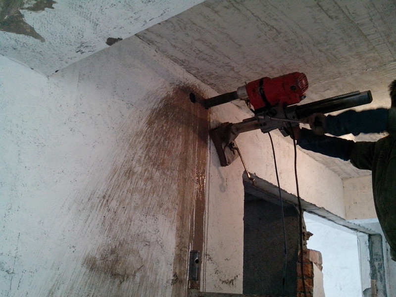 打洞,不要误解,不要有邪恶。因为设计部分的要求,家里的2个空调洞要翻位置。