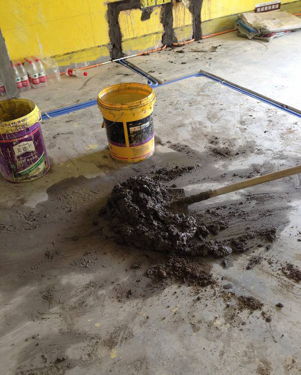 本来圣都是有个专门拌水泥的盒子,张师傅好像用了,我当时是看见用过的痕迹。不过这次吴师傅没有用,直接在地面上拌的。