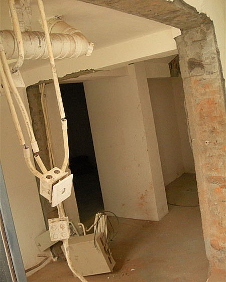 拿了橱柜图纸,下午跑去了新家,去看看进展如何,随便交图纸。一进门,不错哦,墙已经敲了,而且整理的还蛮干净的。