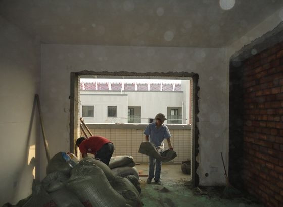 昨天下班去的时候,厨房的墙已经砌好。砌墙师傅姓陈,是夫妻档。