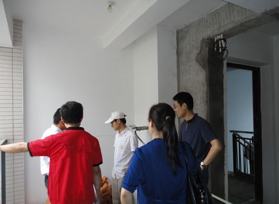 齐家网> 齐家装修论坛> 装修> 我和兰总、吴总、汤监理以及水电工在定位。由于忙着定位,拍的照...