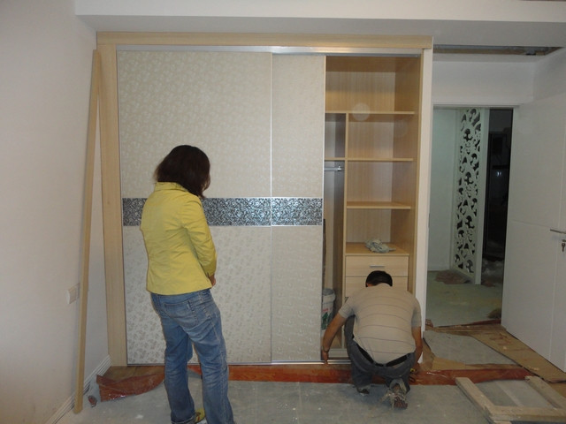 齐家网> 齐家装修论坛> 装修> 凡瑞歌德黄老板和老板娘亲自动手安装衣柜移门。