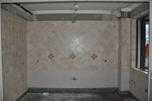 齐家网> 齐家装修论坛> 装修> 昨天开始贴的砖,今天厨房墙面就贴的差不多了,内外卫的墙面还贴...