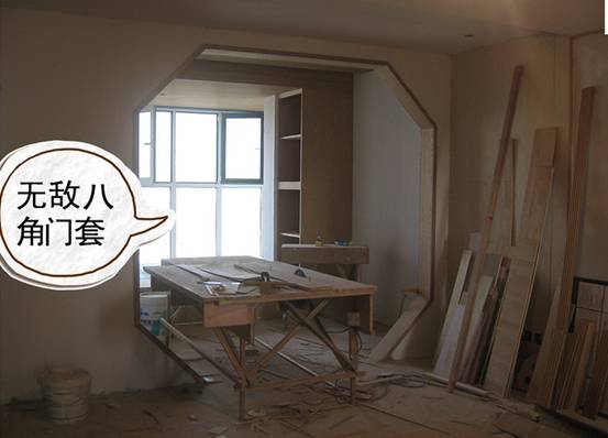 木工也收尾了。八角门套和后来小夏新设计的八角窗套交相辉映,美...
