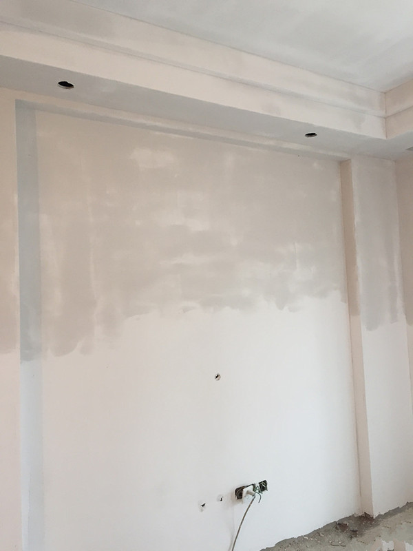 电视墙右边比较高,师傅腻子批的比较厚调整了一下。