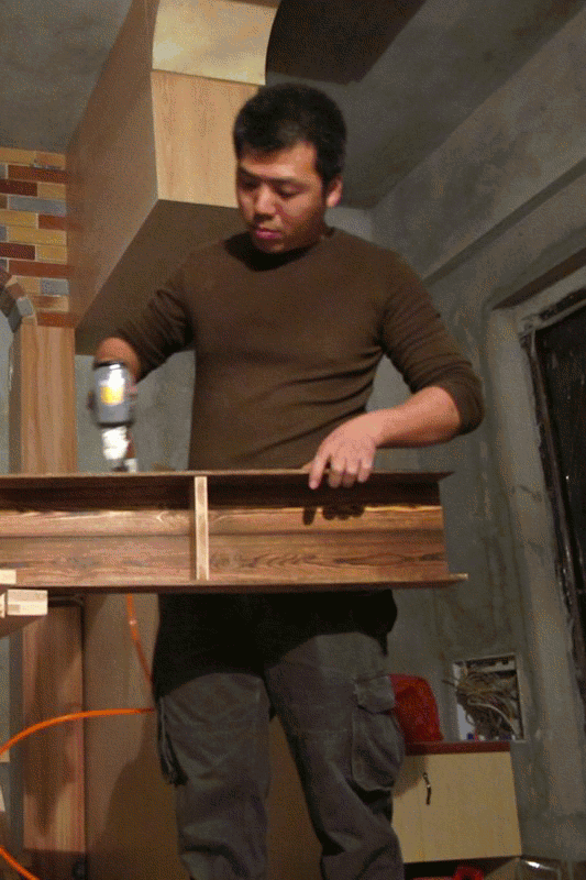 2:45度拼接成同字框,俺用的是9公分宽0.9公分厚的,所以一条假梁需要6片拼接。