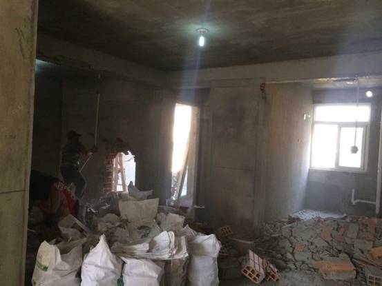 装修的程序都一样,家家户户先砸墙:今天正式开始砸墙。