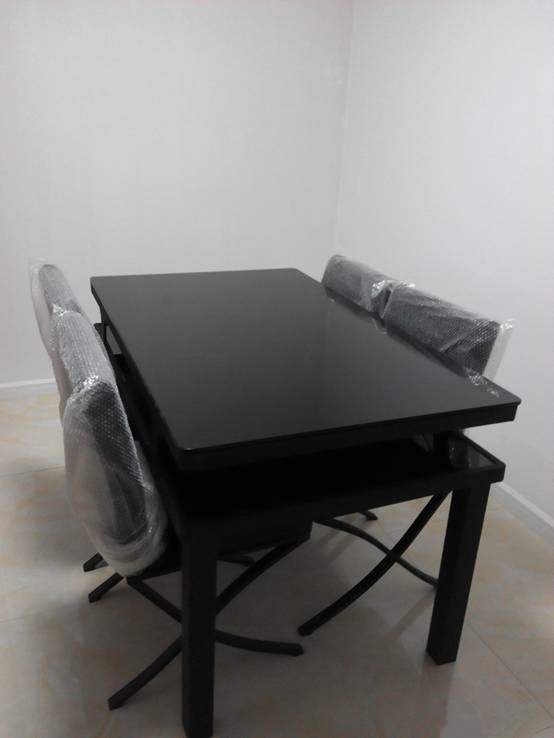 中午网购的桌椅和茶几也到了,老公很快就安装完毕。没想到动手能...