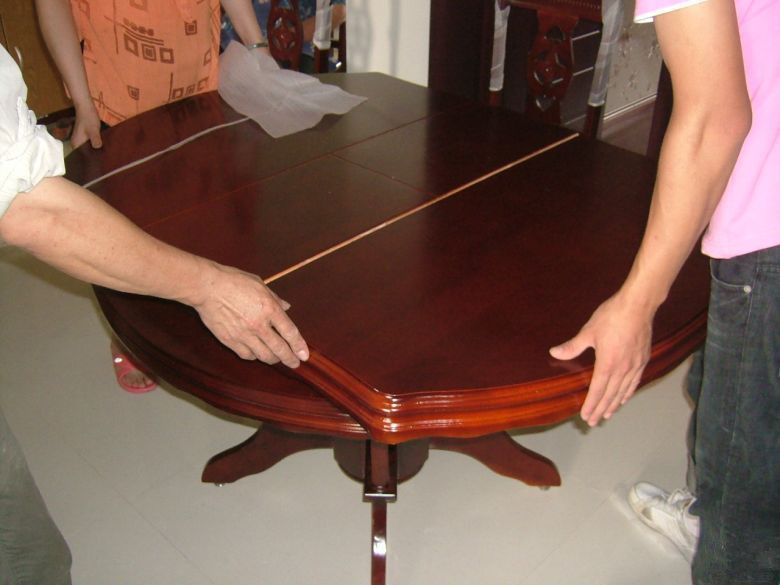 再来,我家餐桌可以变形哦!先变成长的,再变成圆桌,哈哈,不错吧!