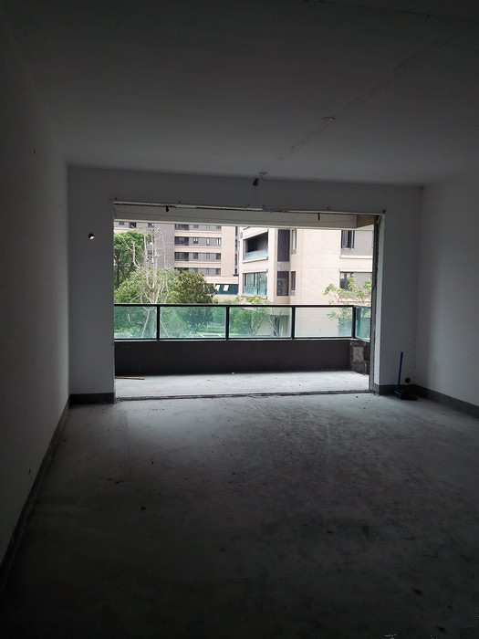 因为计划是封闭阳台作为客厅的一部分,(功能上划分给小朋友做一个洒满阳光的活动区域)所以阳台四扇大大的落地玻璃门也拆了。