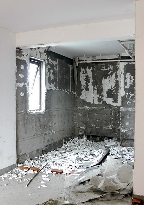 厨卫墙面的保温层被铲除了,因为不铲掉的话不好贴砖。
