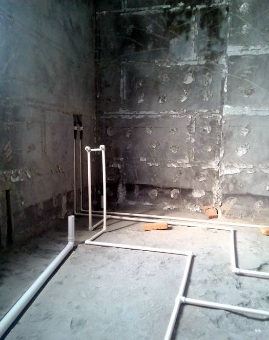 主卫。有两条竖起来的水管是因为这个地方会有一堵矮墙,浴缸龙头...