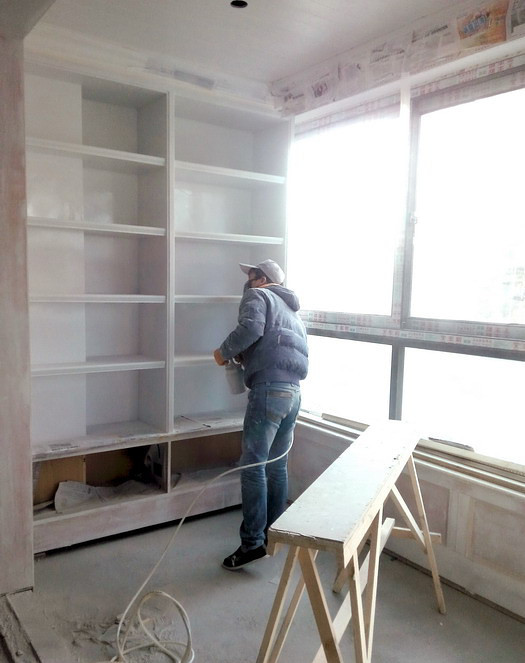 齐家网> 齐家装修论坛> 装修> 喷漆真是辛苦的工作,一进门就看到雾气弥漫,小赵师傅就只戴了个...