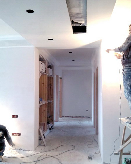 昨天工地上两位师傅在最后一次打磨墙面。