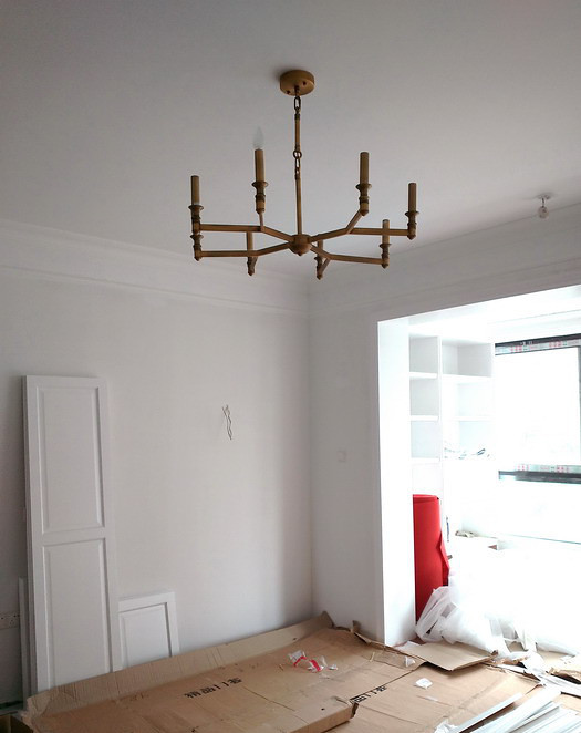 客厅大灯没装灯罩,看上去很象蜘蛛,哈哈。其实灯罩挺美貌的,略...