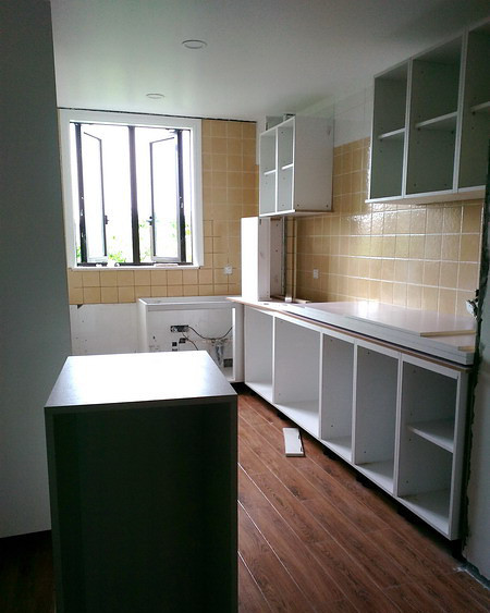 我家厨房现在还是这样。厨房电器5件已经送货等待安装。