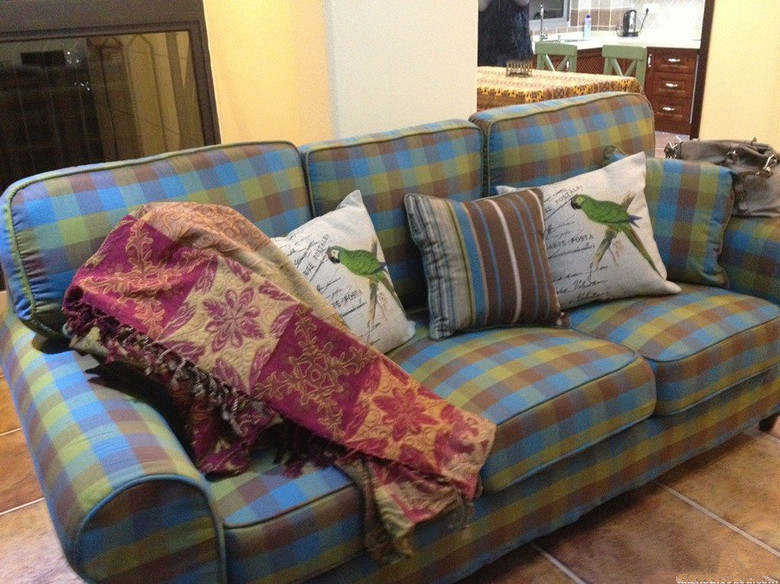 格子小清新的沙发,也是网上定的,色彩和质感不错,只是稍稍硬了...