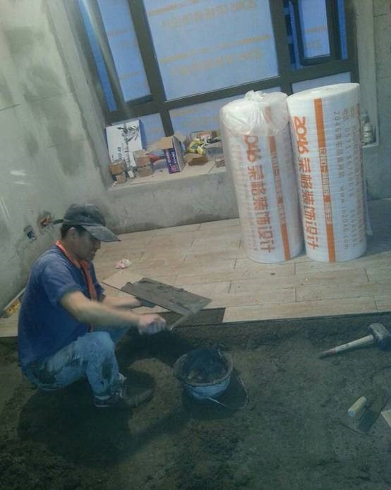 齐家网> 齐家装修论坛> 装修> 铺设中的房间地板砖~~~挑了很久啊~~~~贴好效果比想象的好...