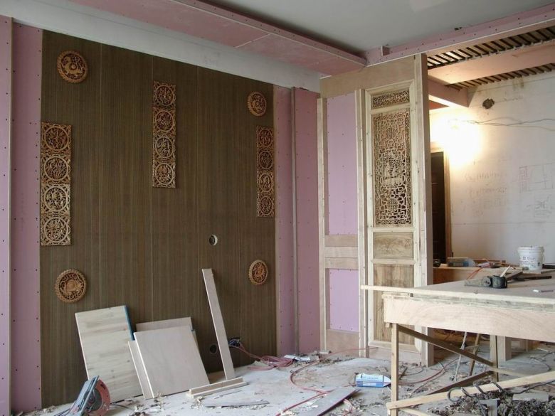 装上雕花门玄关,先看看效果,再作调整。