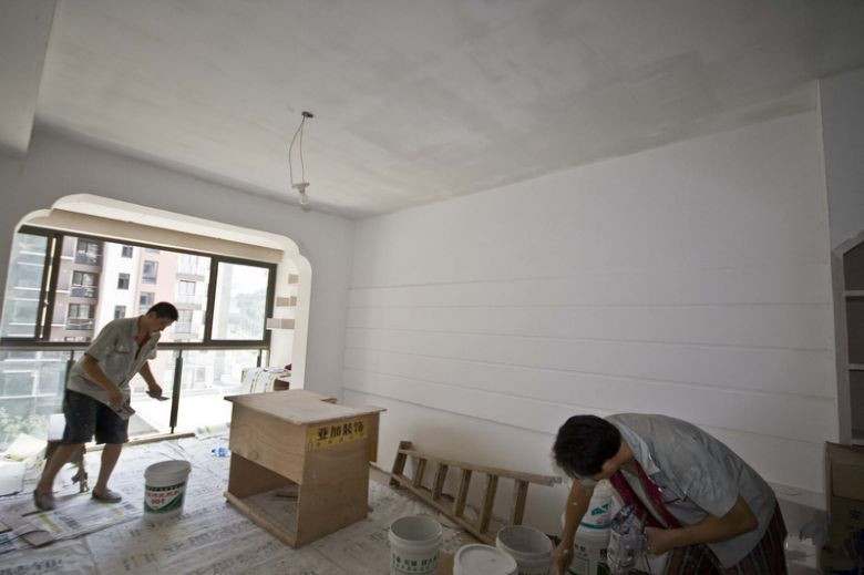 批第一遍腻子,第一遍腻子批的差不多了。师傅说批第二遍腻子后效...