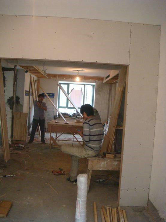 泥工师傅已经把书房的门隔好了,不过我觉得会有点矮,移门的高度...