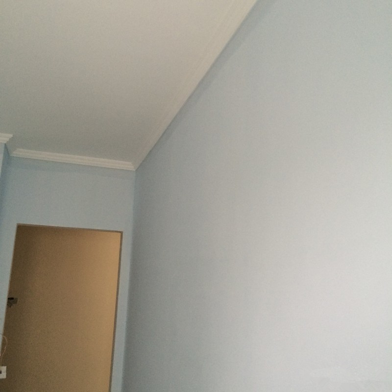 今天第一遍油漆,预计星期四油漆结束。小孩房,淡蓝。