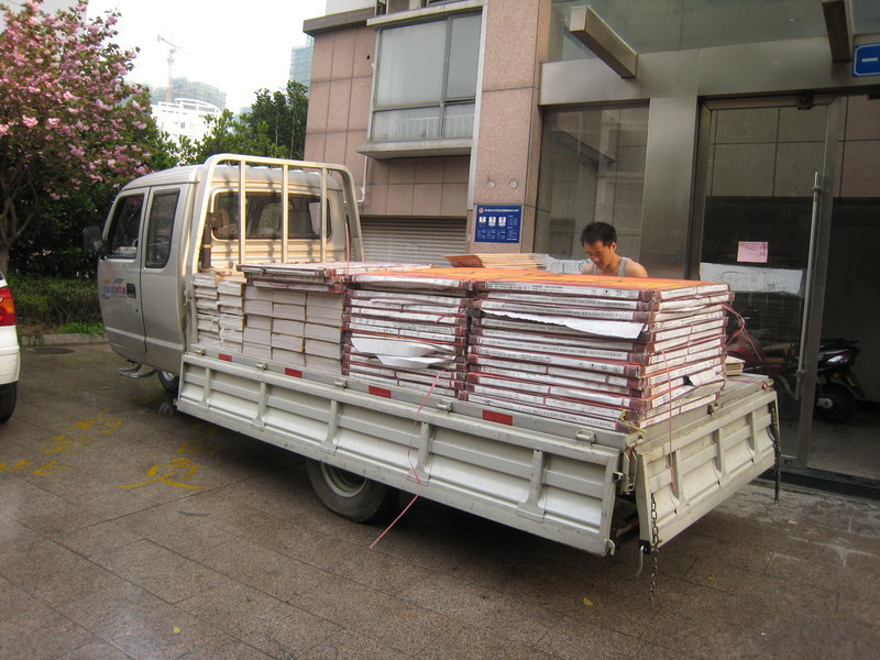 楼兰陶瓷的砖加工后昨日进场,满满一车重量十足。来自四川的搬运工小邓一人辛苦了两个多小时全部放置到位。
