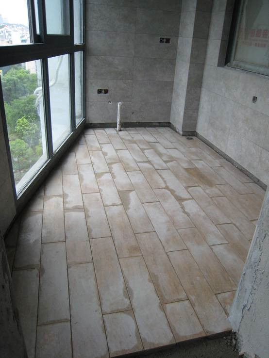 洗衣房阳台砖贴好了。夫人和老妈不喜欢灰色的砖,但我和设计师选...