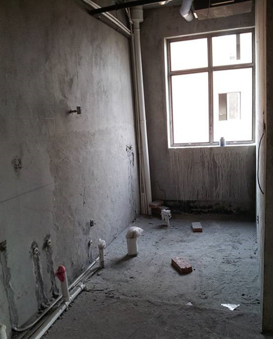 八楼小小的卫生间,采用干湿分享,外面是双盆。