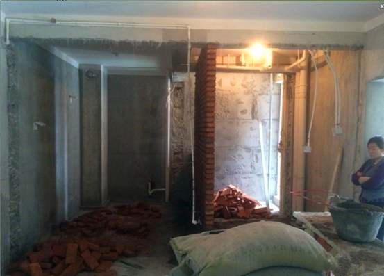 厨房和卫生间的墙都隔好了!这样空间果然大了很多!比原来看的舒...