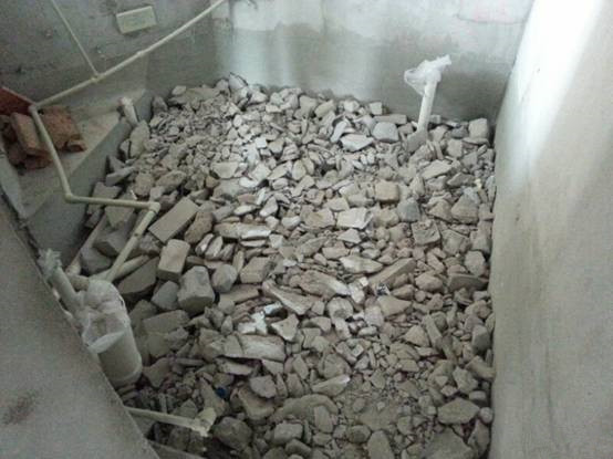 中午去工地收热水器,看到两个卫生间已回填完毕。