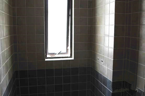 1、墙面大面积以仿古白为主色调,顶部一圈灰蓝砖走边,下半段以五块灰蓝砖为主,摒弃一切的腰线。