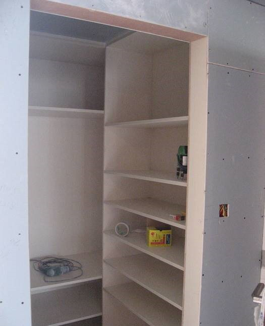 入门储藏室应我们的要求,最大储藏功能就是放鞋子以及进出门的临时衣服挂放,也是唯一一处免漆板打的地方,感觉师傅手艺不错。