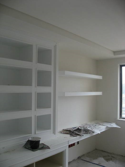 墙面的腻子三遍基本结束,顶部腻子也是第四遍正在处理中。